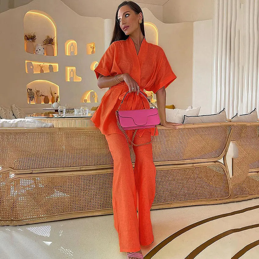 J’ai commandé cet ensemble en taille M et il est parfait 😍. La matière est fluide, légère, et donne une allure très raffinée. Je l’ai porté avec des talons pour un dîner et c'était un sans faute !