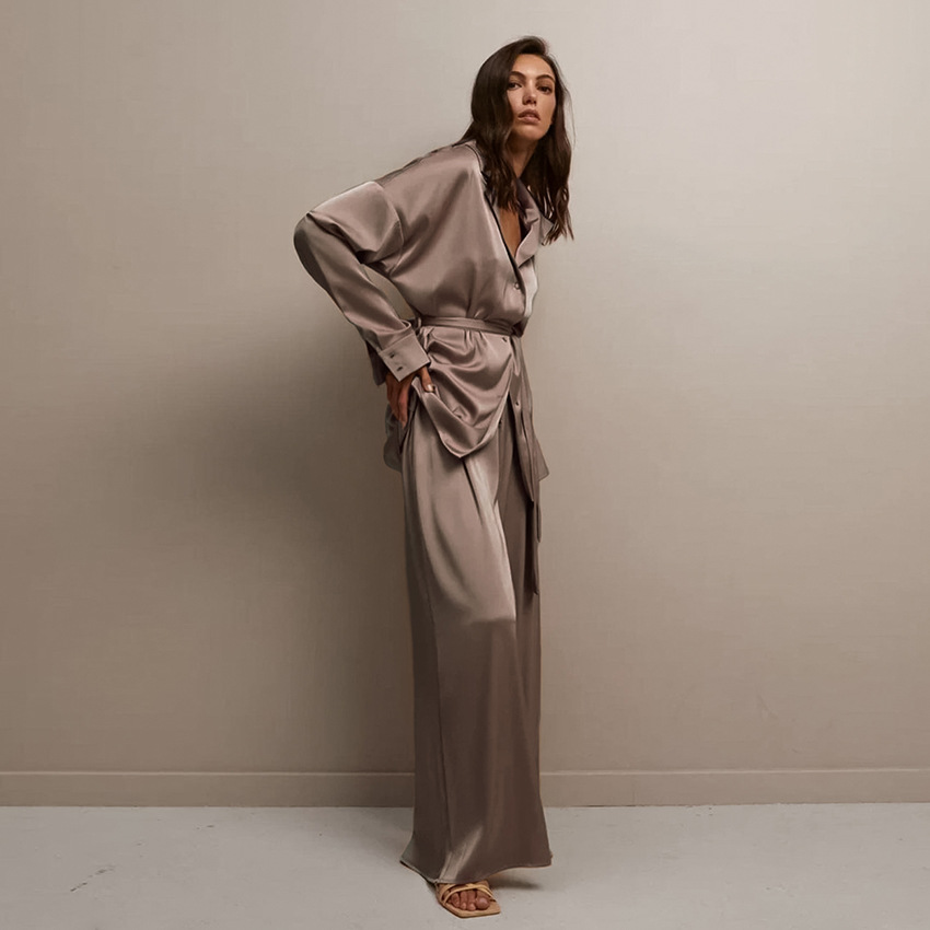 L’Ensemble Satin Fluide – Chemise & Pantalon Large