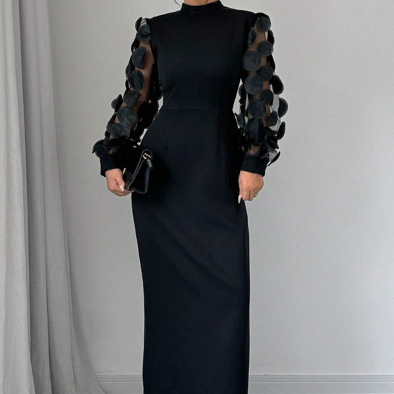Élégante et intemporelle, cette robe longue noire est la pièce idéale pour une allure chic et féminine en toute occasion. Son design épuré est sublimé par des manches longues en patchwork délicat, apportant une touche moderne et raffinée. Sa coupe fluide et sa longueur maxi mettent la silhouette en valeur tout en assurant un confort optimal.