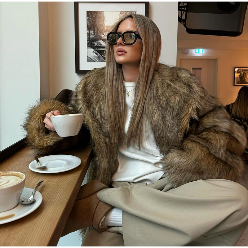 Cette veste marron au rendu effet fourrure apporte une allure chic et sophistiquée, parfaite pour l’hiver. Sa coupe élégante et ses manches longues offrent confort et style, tandis que sa matière douce crée un look cosy et raffiné. Idéal pour un style urbain élégant, il se porte facilement au quotidien comme pour des sorties plus habillées.