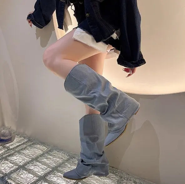 Les Bottes En Denim Hautes en Denim Style Rétro