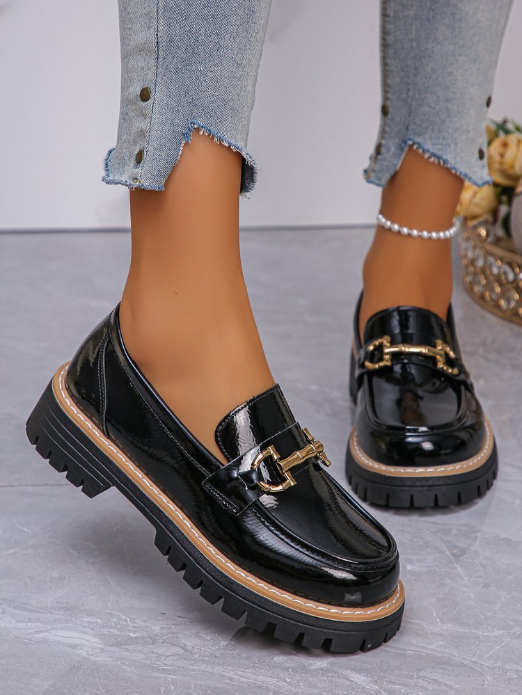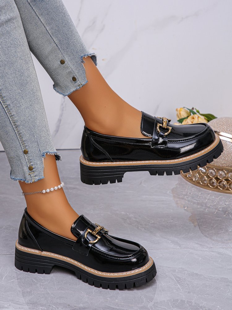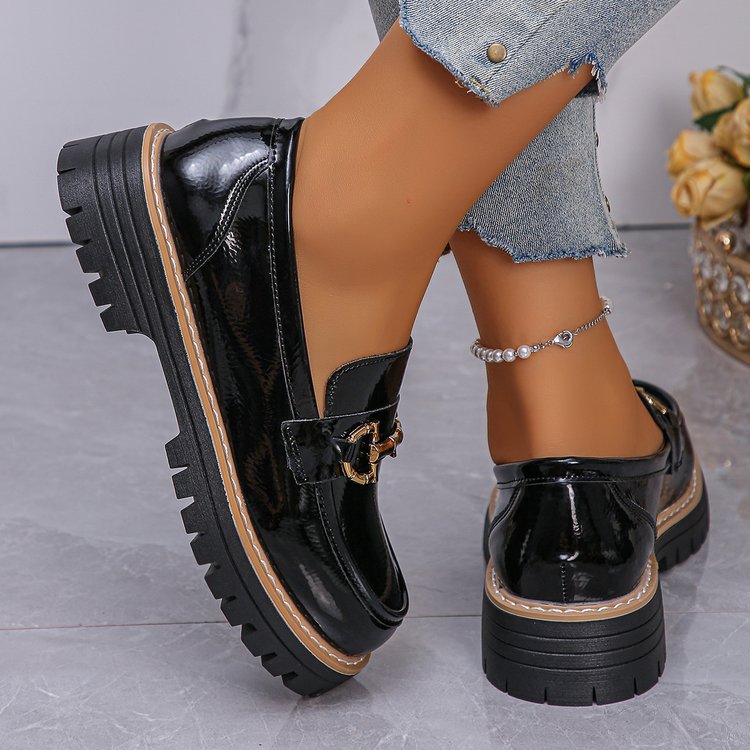 Élégants et modernes, ces mocassins à talon compensé (4.1 cm) offrent confort et stabilité toute la journée. Conçus en cuir vegan noir vernis, avec bout rond et bouche profonde, ils apportent une touche chic et raffinée. Semelle antidérapante et tailles du 36 au 43. Idéal pour un look tendance, du bureau à vos sorties.